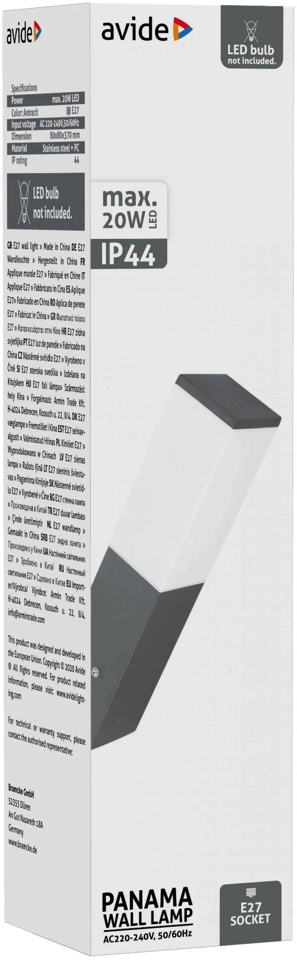 Avide kültéri fali lámpa Panama 1xE27 IP44 Antracit