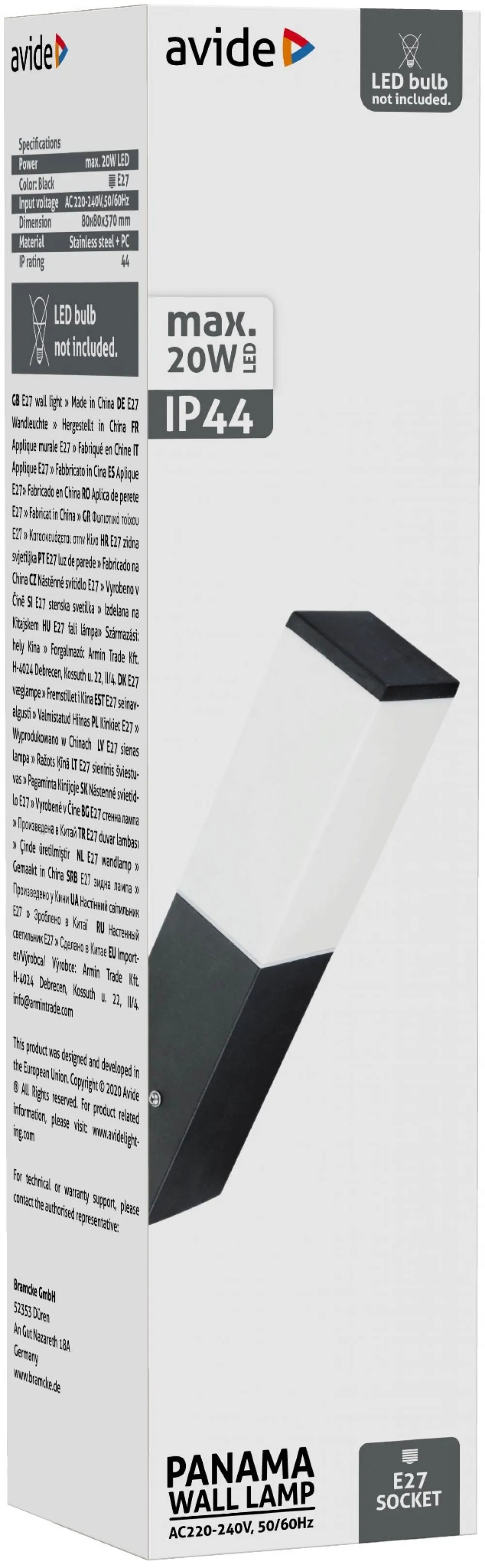 Avide kültéri fali lámpa Panama 1xE27 IP44 fekete