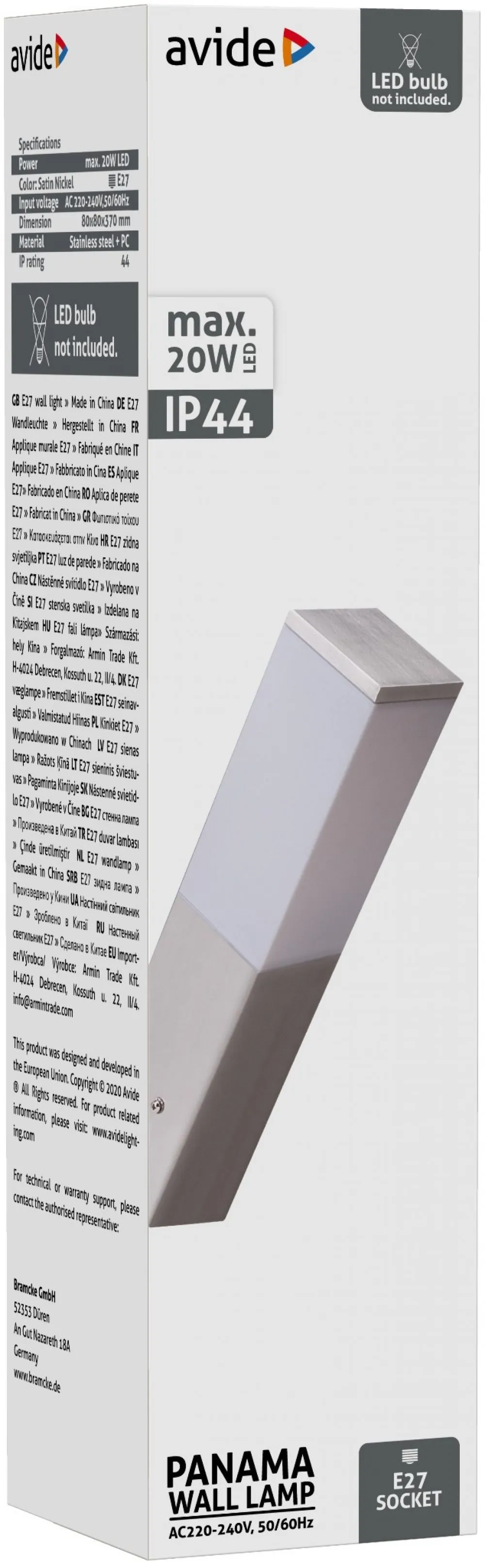 Avide kültéri fali lámpa Panama 1xE27 IP44 Szatén Nikkel