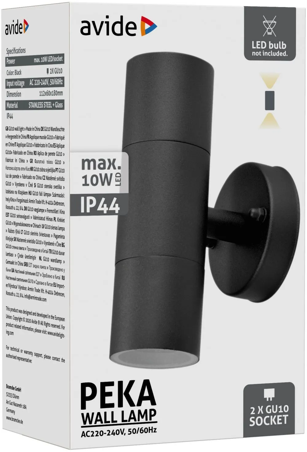 Avide kültéri fali lámpa Peka 2xGU10 IP44 Fekete