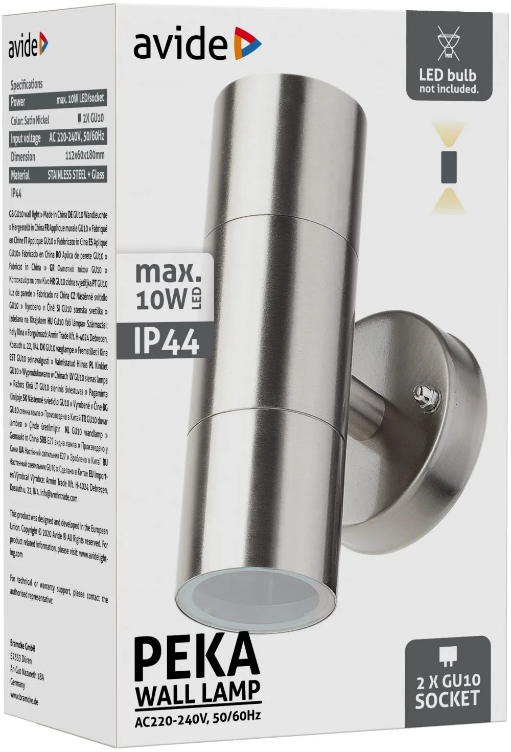 Avide kültéri fali lámpa Peka 2xGU10 IP44 Szatén Nikkel