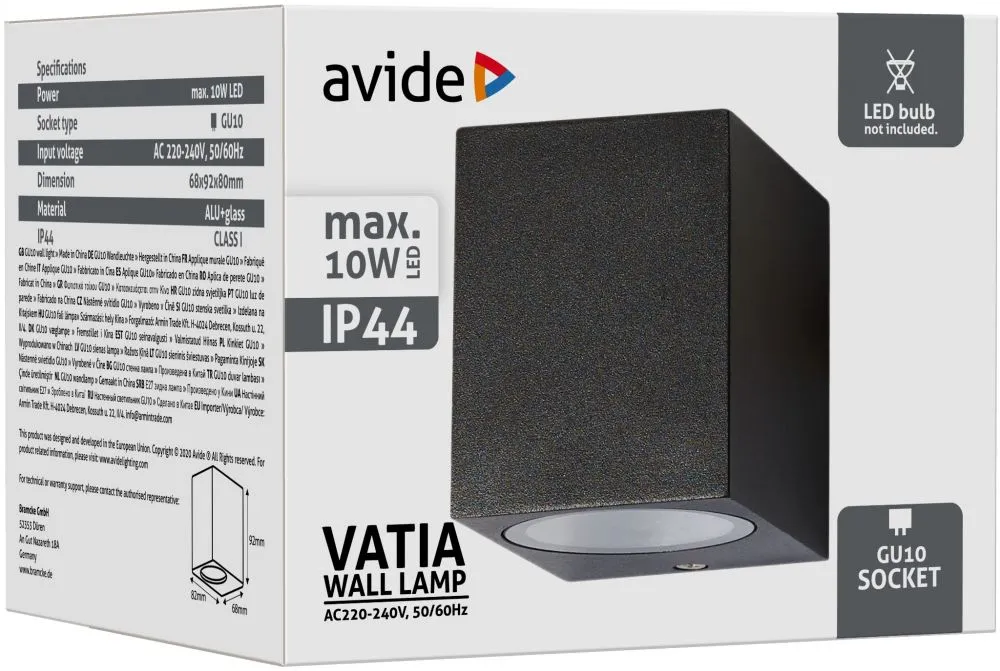 Avide kültéri fali lámpa Vatia 1xGU10 IP44 Fekete
