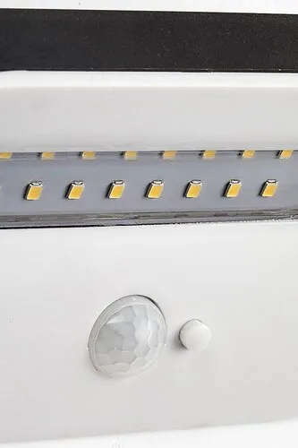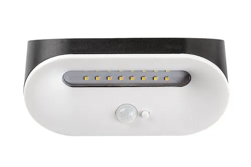 A modern stílusú Brezno mozgásérzékelős, napelemes kültéri fali lámpát elsősorban a teraszra vagy a ház külső falára ajánljuk, ahol megvilágíthatjuk vele a bejárathoz vezető gyalogutat. A stílusos, lekerekített formájú modell fekete színben, fehér búrával, teljes egészében műanyagból készül. A Brezno beépített LED fényforrással rendelkezik, amelynek teljesítménye 3,2 W, fényereje búrával 145 lumen, búra nélkül 200 lumen, színhőmérséklete pedig 4000 K. A természetes fehér fénnyel világító fényforrás élettartama 20 000 óra. Az akkumulátor feszültsége 3,7 V, kapacitása 1200 mAh. Az intelligens szenzor 3-5 méter távolságból, 120°-os látószögben érzékeli a mozgást, és a lámpa fényerejét a körülményeknek megfelelően változtatja. A kapcsolóval ellátott kültéri lámpa szélessége 160 mm, magassága 75 mm, faltól mért távolsága 80 mm. A Brezno IP44-es védettsége garantálja, hogy legfeljebb 1 mm átmérőjű tárgyak behatolása ellen, valamint bármilyen irányból fröccsenő víz ellen védett.