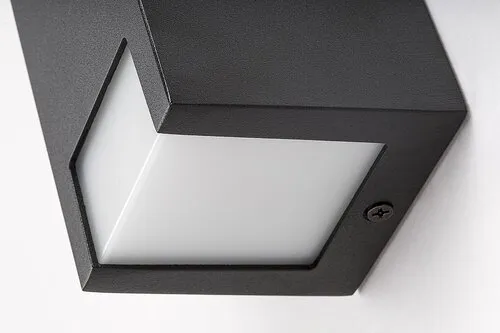 A modern stílusú Cernon kültéri fali lámpát elsősorban a teraszra vagy a ház külső falára ajánljuk. A minimál dizájnnal készült fekete színű modell bizonyosan elnyeri a tetszését, ha olyan lámpát keres, amely a funkcionalitásra helyezi a hangsúlyt, és szinte észrevétlenül simul bele a környezetébe. A téglatestet formázó Cernon anyaga alumínium, a lámpatest alsó részén ablakszerűen elhelyezett fehér búra pedig műanyagból készül. A fali lámpa egy darab legfeljebb 7 W teljesítményű fényforrással használható, a foglalat típusa GU10. A kültéri lámpa méretei a következők: szélessége 75 mm, magassága 110 mm, faltól mért távolsága 80 mm. A lámpa IP44-es védettséggel rendelkezik, ami garantálja, hogy 1 mm-nél nagyobb szilárd tárgyak behatolása ellen, valamint bármilyen irányból fröccsenő víz ellen védett. Ezt a modellt fényforrás nélkül szállítjuk.