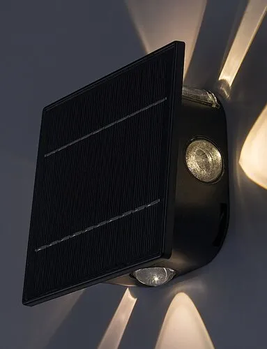 A modern stílusú Emmen napelemes kültéri fali lámpát a teraszra vagy a ház külső falára ajánljuk mindazoknak, akik minden igényt kielégítő okos kültéri modellt keresnek. Az Emmen fekete színben, átlátszó búrával, teljes egészében műanyagból készül, és fényérzékelővel látták el, amely a lámpa fényerejét mindig a körülményekhez igazítja. Emellett a lámpa dimmelhető, azaz kapcsoló segítségével mi magunk is szabályozhatjuk a fényerőt. A beépített LED fényforrás teljesítménye 0,5 W, fényereje búrával 50 lumen, búra nélkül 60 lumen, élettartama 30 000 óra. A színhőmérséklet választható: kapcsoló segítségével 3000 vagy 6000 K-t állíthatunk be. Ezenkívül a lámpa kapcsolóval állítható memória funkcióval is rendelkezik. Az Emmen méretei a következők: szélessége 130 mm, magassága 130 mm, faltól mért távolsága 70 mm. Az akkumulátor feszültsége 3,7 V, kapacitása 1300 mAh. Az IP54-es védettség garantálja, hogy a lámpa por ellen, valamint bármilyen irányból fröccsenő víz ellen védett. Ideális működési hőmérsékleti tartománya: –10 °C–50 °C.