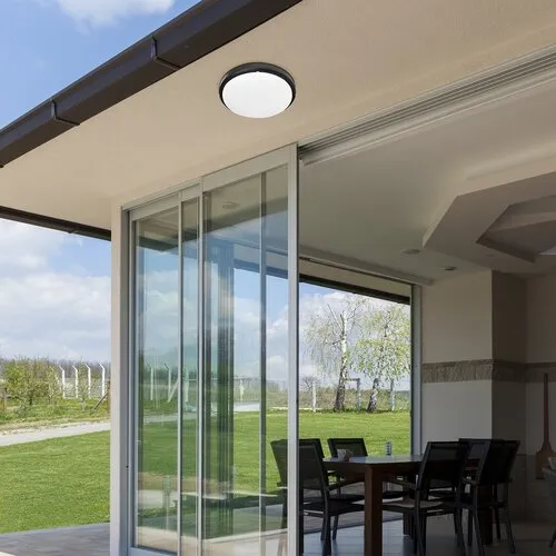 A modern stílusú Hort kültéri fali / mennyezeti lámpa remek választás a teraszra vagy a ház külső falára. Mivel tetszés szerint felszerelhetjük a mennyezetre vagy a falra, jó szolgálatot tehet a teraszon elhelyezett asztal fölött vagy éppen a bejárati ajtó közelében a falon. Ez a praktikus, kerek formájú modell teljes egészében műanyagból, fekete színben, fehér búrával készül. A Hort a G energiaosztályba tartozó beépített LED fényforrással rendelkezik, amelynek teljesítménye 15 W, fényereje búrával 1100 lumen, búra nélkül 1350 lumen, színhőmérséklete pedig 4000 K. A természetes fehér fénnyel világító fényforrás élettartama 20 000 óra. A lámpa átmérője 190 mm, faltól/mennyezettől mért távolsága 60 mm. A Hort kültéri lámpa IP54-es védettsége garantálja, hogy por ellen, valamint bármilyen irányból fröccsenő víz ellen védett.