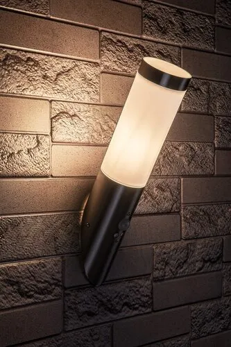 Modern megjelenésű kültéri falikar beépített mozgásérzékelővel, UV sugárzásnak ellenálló kivitelben. 38 cm magas, 7,6 cm átmérőjű, döntött talapzatú, rozsdamentes acél színű fém lámpatest és fehér színű műanyag lámpabúra, IP44-es, azaz fröccsenő víz és por elleni védelemmel. A lámpatest E27-es foglalatú, max. 25W teljesítményű energiatakarékos fényforrással is használható. A falikar elhelyezésekor vegye figyelembe, hogy a szenzor 100 fokos szögben, max. 5 méter távolságban érzékeli a mozgást.