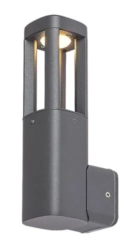 A modern stílusú Kalisz kültéri fali lámpa remek választás a teraszra vagy a ház külső falára, ha visszafogott megjelenésű, ugyanakkor strapabíró lámpát keres, amely a zord időjárási körülményeket is jól bírja. A négyszögletes, lekerekített formával készült antracitszürke modell anyaga alumínium, a fehér búra pedig műanyag. A kisméretű dísztalp a lámpa alsó részéhez kapcsolódik. A fali lámpa a G energiaosztályba tartozó beépített LED fényforrással rendelkezik, amelynek teljesítménye 7 W, fényereje búrával 250 lumen, búra nélkül 700 lumen, élettartama pedig 30 000 óra. A 3000 K színhőmérsékletű fényforrás meleg fehér fénnyel világít. A kültéri lámpa méretei a következők: szélessége 70 mm, magassága 250 mm, faltól mért távolsága 110 mm, beépítési átmérője 70 mm. A Kalisz IP54-es védettséggel rendelkezik, ami garantálja, hogy por ellen, valamint bármilyen irányból fröccsenő víz ellen védett. Ideális működési hőmérsékleti tartománya: –30 °C–50 °C.