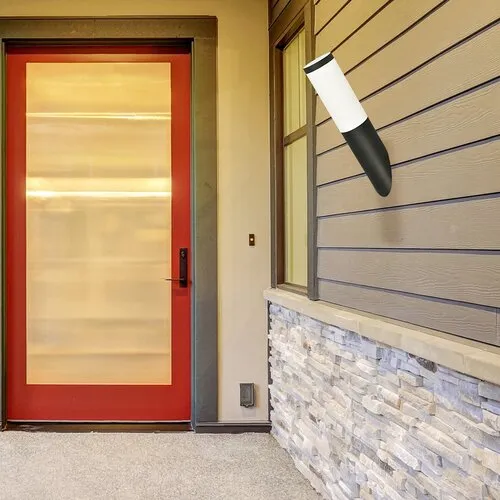 Modern megjelenésű kültéri falikar 1 db foglalattal, döntött talapzatú kivitelben. Matt fekete színű rozsdamentes acélból és műanyagból készített lámpatest, IP44-es, azaz por és fröccsenő víz elleni védelemmel. A lámpatest E27-es foglalatkialakítású, max. 25W teljesítményű, kizárólag energiatakarékos fényforrással használható.