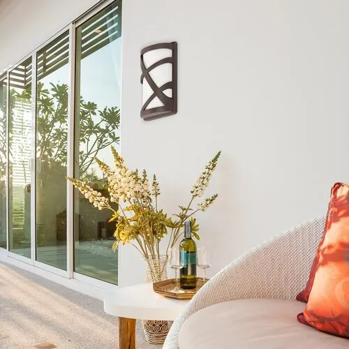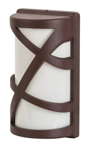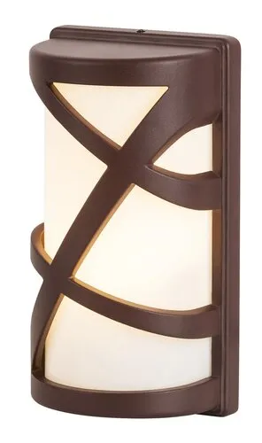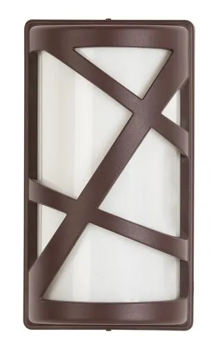 Modern megjelenésű kültéri fali lámpa, UV sugárzásnak ellenálló kivitelben, IP54-es, azaz por és fröccsenő víz elleni védelemmel. A 26,7 cm magas, 14,6 cm széles, barna színű fém házból és műanyag lámpabúrából összeállított lámpatest E27-es foglalatú, max. 40W teljesítményű fényforrással használható.