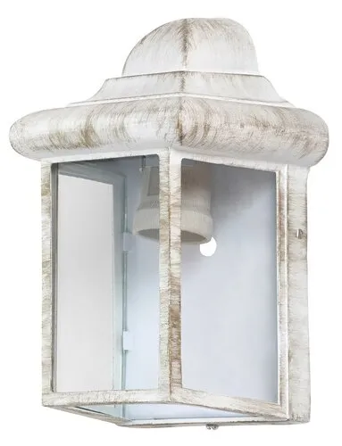 Klasszikus megjelenésű kültéri fali lámpa 1 db foglalattal. 22 cm magas, 12 cm kinyúlású, antik fehér színű fém lámpatest és üveg lámpabúra, IP43-as védettséggel. A lámpatest E27-es foglalatkialakítású, max. 60W teljesítményű energiatakarékos fényforrással is használható.