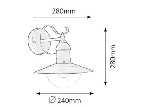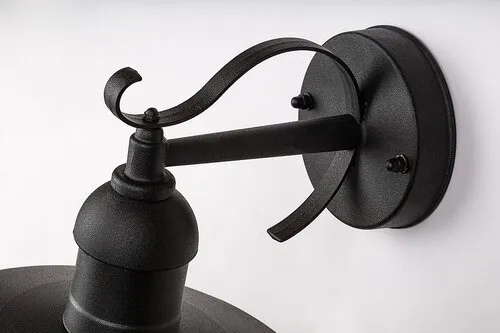 Időtlen megjelenésű kültéri falikar 1 db foglalattal, UV sugárzásnak ellenálló kivitelben, IP44-es, azaz fröccsenő víz elleni védettséggel. 28 cm kinyúlású, 28 cm magas, fekete színű, fémből készített lámpatest áttetsző műanyag búrával. A lámpatest E27-es foglalatú, max. 60W teljesítményű fényforrással használható.