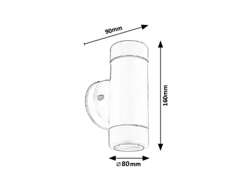 A Medina kültéri fali lámpa dizájnja a minimál stílus jegyében született. A műanyagból készült, matt fehér lámpát átlátszó búra egészíti ki, a lámpa felfelé és lefelé világít. Jó szolgálatot tehet a külső házfalon vagy a teraszon, ahol kisebb tér fókuszáltabb megvilágítására van szükség. Két darab, legfeljebb 10 W teljesítményű, energiatakarékos fényforrással használható, a foglalat típusa GU10. A lámpát fényforrás nélkül szállítjuk. A Medina fali lámpa méretei a következők: magassága 160 mm, a búra átmérője 80 mm, a lámpa faltól való távolsága 90 mm. IP44-es védettséggel rendelkezik, azaz legfeljebb 1 mm átmérőjű tárgyak behatolása ellen, valamint bármilyen irányból fröccsenő víz ellen védett.
