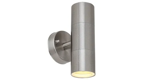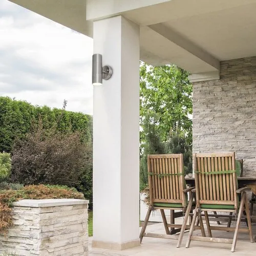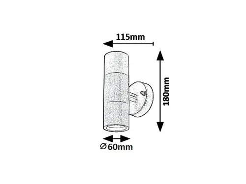 A Zagreb kültéri fali lámpát modern, letisztult dizájn jellemzi. A fémből és üvegből készült, rozsdamentes acél színű fali lámpát kerek dísztalp egészíti ki. A falikar felfelé és lefelé is világít, így különösen praktikus lehet a például bejárat környékének megfelelő megvilágításában. A Zagreb két darab, egyenként legfeljebb 12 W teljesítményű, energiatakarékos fényforrással használható, a foglalatok típusa GU10. A lámpát fényforrások nélkül szállítjuk. A henger alakú modell átmérője 60 mm, magassága 180 mm, faltól való távolsága 115 mm. IP44-es védettsége garantálja, hogy a lámpa legfeljebb 1 mm átmérőjű tárgyak behatolása ellen, valamint bármilyen irányból fröccsenő víz ellen védett.