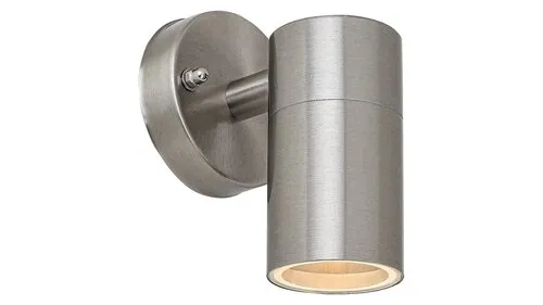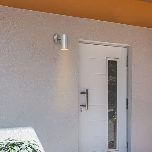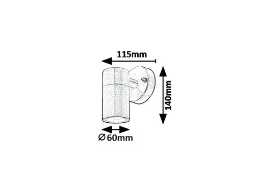 A Zagreb kültéri fali lámpát modern, letisztult dizájn jellemzi. A fémből és üvegből készült, rozsdamentes acél színű fali lámpát kerek dísztalp egészíti ki. A Zagreb egy darab, legfeljebb 12 W teljesítményű, energiatakarékos fényforrással használható, a foglalat típusa GU10. A lámpát fényforrás nélkül szállítjuk. A Zagreb kültéri falikar lefelé világít, így különösen praktikus lehet az ajtózár, a csengő vagy éppen egy kapcsoló célzott megvilágításában. A henger alakú modell átmérője 60 mm, magassága 140 mm, faltól való távolsága 115 mm. IP44-es védettsége garantálja, hogy a lámpa legfeljebb 1 mm átmérőjű tárgyak behatolása, valamint bármilyen irányból fröccsenő víz ellen védett.