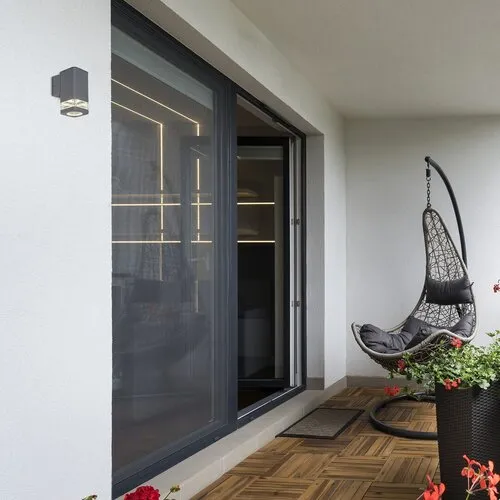 A modern formatervezésű Sintra kültéri fali lámpa praktikus választás, ha a szabadban felszerelhető, lefelé világító modellt keresünk. Elhelyezhetjük a bejárati ajtó mellett, illetve a ház külső falán, ahol erős fénnyel világítja meg a járdát. Az alumíniumból készült, szürke színű lámpát átlátszó műanyag búra egészíti ki. A Sintra egy darab, legfeljebb 25 W teljesítményű fényforrással használható, a foglalat típusa GU10. IP44-es védettség garantálja, hogy ez a modell legfeljebb 1 mm átmérőjű tárgyak behatolása ellen, valamint bármilyen irányból fröccsenő víz ellen védett. A szögletes kültéri lámpa méretei a következők: szélessége 80 mm, magassága 155 mm, faltól mért távolsága 115 mm. A lámpát fényforrás nélkül szállítjuk.