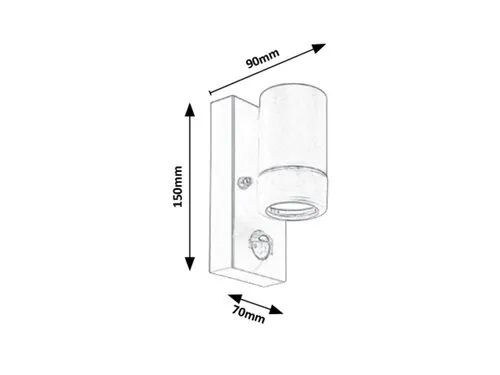 A Medina mozgásérzékelős kültéri fali lámpa dizájnja a minimál stílus jegyében született. A műanyagból készült, matt fekete lámpát átlátszó búra egészíti ki, a lámpa lefelé világít. Ideális lehet a bejárati ajtó fölé, hogy irányított fénye segítsen az ajtó kulccsal való nyitásakor. Egy darab, legfeljebb 10 W teljesítményű, energiatakarékos fényforrással használható, a foglalat típusa GU10. A lámpát fényforrás nélkül szállítjuk. A Medina fali lámpa méretei a következők: magassága 150 mm, szélessége 70 mm, a lámpa faltól való távolsága 90 mm. A mozgásérzékelő 8 méter távolságból, 90°-os látószögben érzékeli a mozgást. A kültéri lámpa IP44-es védettséggel rendelkezik, azaz legfeljebb 1 mm átmérőjű tárgyak behatolása ellen, valamint bármilyen irányból fröccsenő víz ellen védett.