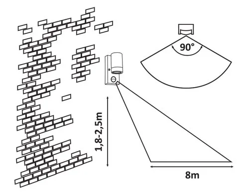 Mozgás érzékelő műszaki adatok2-8m, 90°