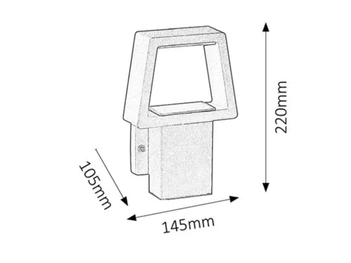 Modern megjelenésű kültéri fali lámpa beépített LED fényforrással. 14,5 cm széles, 22 cm magas, antracit szürke színű, fémből készített lámpatest, IP44-es védelemmel. A beépített LED-es lámpa A+ energiaosztályú, teljesítménye 10,5W, melyhez 900 lumen fényerő társul. Színhőmérséklete melegfehér (3000 Kelvin). 5 év garanciával. A lámpatestben a fényforrás nem cserélhető!