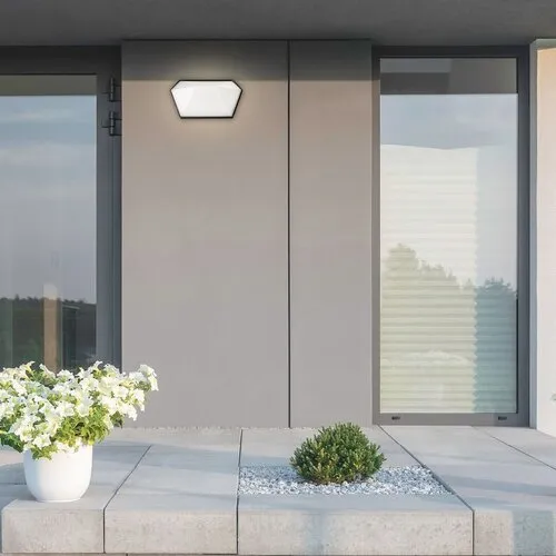 A Salvador kültéri fali lámpa különleges kialakításának köszönhetően biztosan nem marad észrevétlen. A formáját tekintve leginkább kristályra emlékeztető modell ideális választás lehet modern bejárati ajtónk fölé, vagy akár a verandánkra. A fémből készült lámpatestet műanyag búra egészíti ki, a lámpa fekete-fehér színben készül. A Salvador beépített LED fényforrással rendelkezik, melynek teljesítménye 10 W, fényereje 543 lumen, színhőmérséklete 4000 K. A természetes fehér fénnyel világító fényforrás élettartama mintegy 20 000 óra. A fali lámpa méretei a következők: szélessége 240 mm, magassága 130 mm, faltól való távolsága 58 mm. A Salvador kültéri lámpa IP65-ös védettséggel rendelkezik, azaz por behatolása, valamint kisnyomású vízsugár ellen védett. Erre az egyedi modellre 5 év garanciát vállalunk.