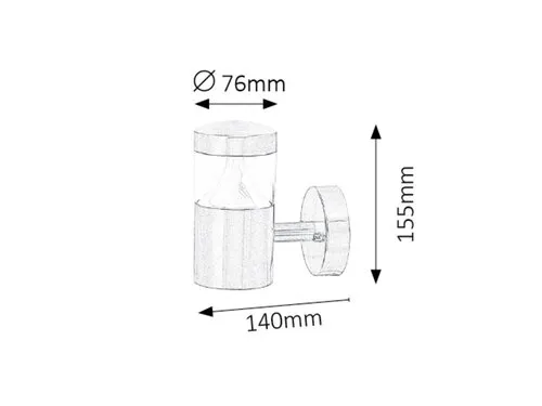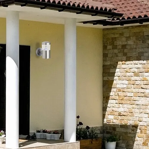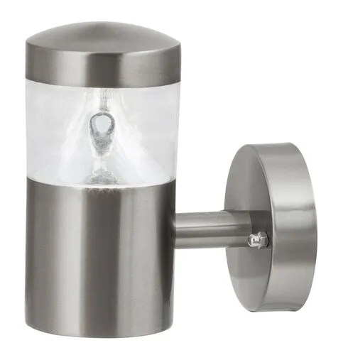 Modern megjelenésű kültéri fali lámpa beépített LED fényforrással. 15,5 cm magas, 14 cm kinyúlású, rozsdamentes acélból és üvegből készített lámpatest, IP44-es, azaz por és fröccsenő víz elleni védelemmel. A beépített, A+ energiaosztályba sorolt LED fényforrás 7W teljesítmény mellett 600 lumenes fényerőt és 4000 Kelvines, azaz természetes fehér színű fényt biztosít. 5 év garanciával. A lámpatestben a fényforrás nem cserélhető!