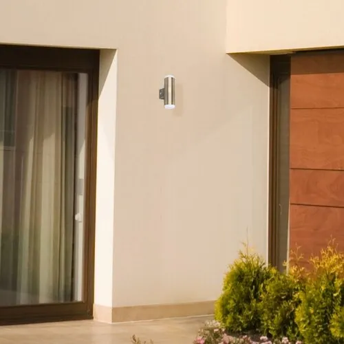 A Catania kültéri fali lámpa igazán elegáns megoldást kínál a terasz vagy éppen a bejárati ajtó környékének megvilágítására. A henger alakú, bronz színű lámpatestből alul és felül opál lámpabúra tűnik elő, a 2 db beépített LED fényforrás meleg fehér fénnyel világítja meg környezetét. Az energiatakarékos fényforrások teljesítménye összesen 8 W, fényerejük 700 lumen, színhőmérsékletük 3000 K, élettartamuk pedig mintegy 30 000 óra. A lámpa anyaga fém és műanyag, méretei pedig a következők: átmérője 52 mm, magassága 186 mm, faltól való távolsága 80 mm. IP44-es védettséggel rendelkezik, azaz legfeljebb 1 mm átmérőjű tárgyak behatolása ellen, valamint bármilyen irányból fröccsenő víz ellen védett. A Catania kültéri fali lámpára 5 év garanciát biztosítunk.