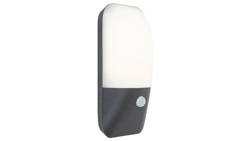 Az antracitszürke és fehér színű, opál búrával ellátott, mozgásérzékelős Ecuador kültéri fali lámpa a modern stílus képviselői közé tartozik. A beépített LED fényforrás 4000 K-es színhőmérsékletének megfelelően természetes fehér fényt sugároz. Az energiatakarékos fényforrás teljesítménye 11W, fényereje 800 lumen, élettartama pedig 30 000 óra. A lámpa anyaga fém és műanyag, méretei pedig a következők: szélessége 120 mm, magassága 220 mm, faltól való távolsága 72 mm. A mozgásérzékelő 6 méter távolságból, 120°-os látószögben érzékeli a mozgást, nappali fényben nem működik. Az IP54-es védettség garantálja, hogy ez a kültéri lámpa káros porbehatás, valamint bármilyen irányból fröccsenő víz ellen védett. Az Ecuador mozgásérzékelős fali lámpára 5 év garanciát biztosítunk.