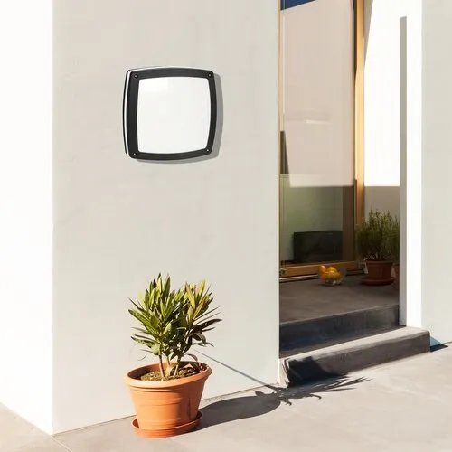 Időtlen megjelenésű kültéri fali lámpa 2 darab foglalattal, UV sugárzásnak ellenálló kivitelben, IP54-es, azaz fröccsenő víz és por elleni védelemmel. A 30 cm széles, fekete színű fémből és fehér színű műanyagból készített lámpatest E27-es foglalatú, max. 2x 60W teljesítményű fényforrással használható.