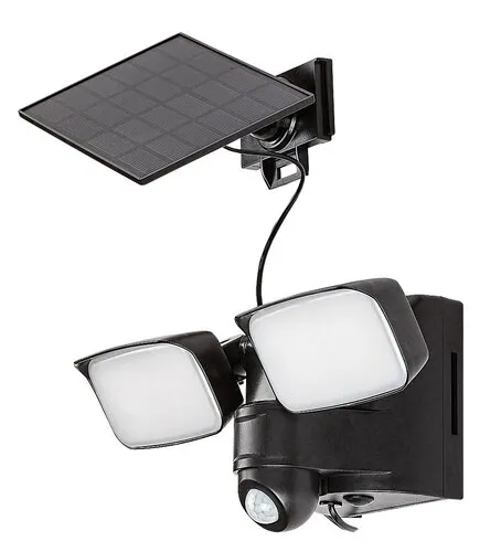 A modern stílusú, mozgás- és fényérzékelővel ellátott Leszno napelemes kültéri fali lámpát felszerelhetjük a teraszon, a kertben vagy a ház külső falán. A szögletes és lekerekített formákból építkező modell teljes egészében műanyagból készül, a fekete lámpatestet fehér búrák és téglalap alakú dísztalp egészíti ki. A Leszno beépített LED fényforrással rendelkezik, amelynek teljesítménye 10 W, fényereje búrával 800 lumen, búra nélkül 1000 lumen, élettartama 15 000 óra. A 4000 K színhőmérsékletű fényforrás természetes fehér fényt sugároz. A mozgásérzékelő 3-5 méter távolságból, 120°-os látószögben érzékeli a mozgást, a fényérzékelő pedig a lámpa fényerejét mindig a körülményekhez igazítja. Az akkumulátor feszültsége 3,7 V, kapacitása 3600 mAh. A kültéri lámpa szélessége 280 mm, magassága a szolárpanel nélkül 140 mm, faltól mért távolsága 155 mm, a kábel hossza 3000 mm. IP54-es védettsége garantálja, hogy por ellen, valamint bármilyen irányból fröccsenő víz ellen védett. Az ideális működési hőmérsékleti tartománya –10-40 °C.