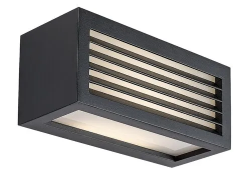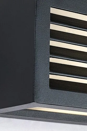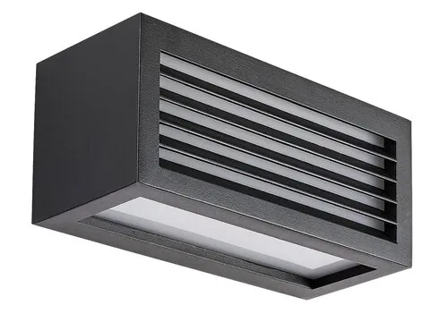 A modern stílusú Lublin kültéri fali lámpát elsősorban a teraszra vagy a ház külső falára ajánljuk. A téglatestet formázó modell kialakításának köszönhetően több irányban bocsátja ki a fényt: a lámpa alsó részén akadálytalanul áramlik kifelé a fehér műanyagbúrán keresztül, míg a lámpa előre tekintő felületén sávosan tör elő a lámpa belsejéből. Az alumíniumból készült fekete színű lámpa a G energiaosztályba tartozó beépített LED fényforrással rendelkezik, amelynek teljesítménye 10 W, fényereje búrával 480 lumen, búra nélkül 1000 lumen, élettartama pedig 25 000 óra. A 4000 K színhőmérsékletű fényforrás természetes fehér fénnyel világít. A kültéri lámpa méretei a következők: szélessége 250 mm, magassága 110 mm, faltól mért távolsága 100mm. A Lublin IP54-es védettséggel rendelkezik, ami garantálja, hogy por ellen, valamint bármilyen irányból fröccsenő víz ellen védett. Az ideális működési hőmérsékleti tartománya –20-40 °C.