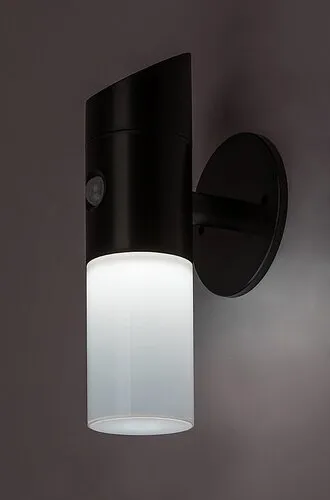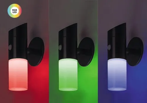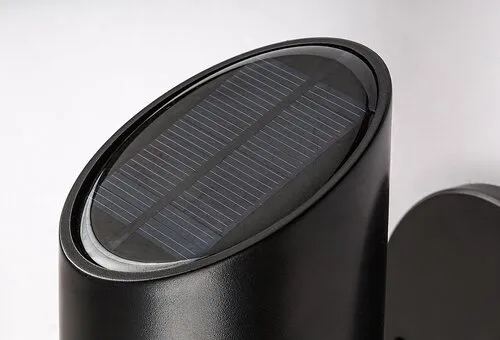 A modern stílusú Lutto napelemes kültéri okos fali lámpát felszerelhetjük a teraszon vagy a ház külső falán. A fekete, henger alakú, felül ferdén elvágott lámpa teljes egészében műanyagból, fehér búrával készül, és lapos, kerek dísztalp segítségével rögzíthető a falra. Mozgásérzékelője 10 méter távolságból, 90°-os látószögben érzékeli a mozgást, a fényérzékelő pedig a lámpa fényerejét mindig a körülményekhez igazítja. A beépített LED fényforrás teljesítménye 1 W, fényereje búrával 65 lumen, búra nélkül 90 lumen, élettartama 15 000 óra. A 6500 K színhőmérsékletű fényforrás hideg fehér fényt sugároz. A fali lámpa RGB világításra is képes, és éjszakai funkciót is kínál. Méretei a következők: magassága 230 mm, átmérője 60 mm, faltól mért távolsága 110 mm, beépítési átmérője 100 mm. Az akkumulátor feszültsége 3,7 V, kapacitása 1200 mAh. A lámpa IP44-es védettsége garantálja, hogy 1 mm-nél nagyobb szilárd tárgyak behatolása ellen, valamint bármilyen irányból fröccsenő víz ellen védett.
