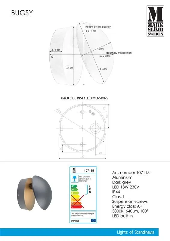MARKSLÖJD BUGSY Kültéri fali lámpa LED 13W meleg fehér 640lm szürke