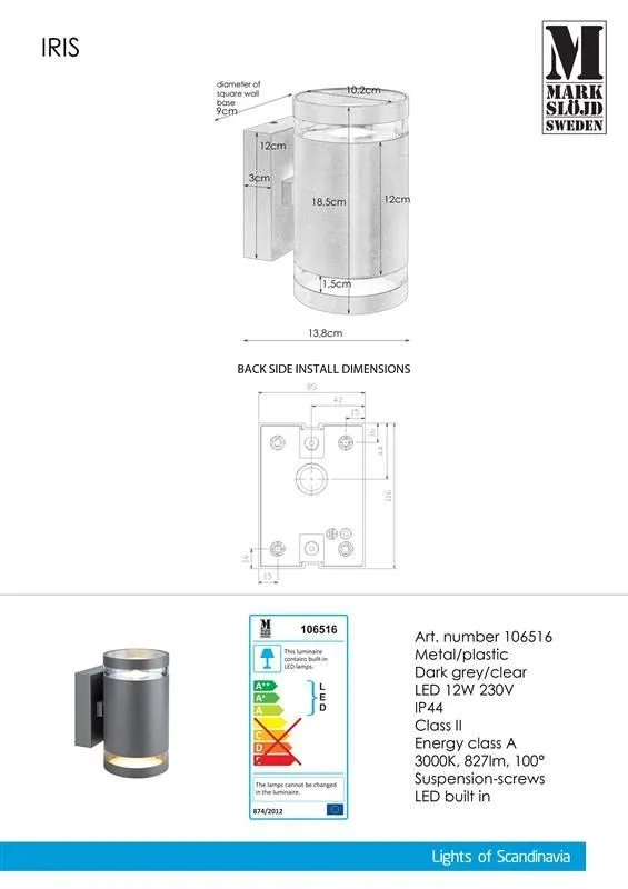 MARKSLÖJD IRIS Kültéri fali lámpa LED 2x6W meleg fehér 827lm szürke