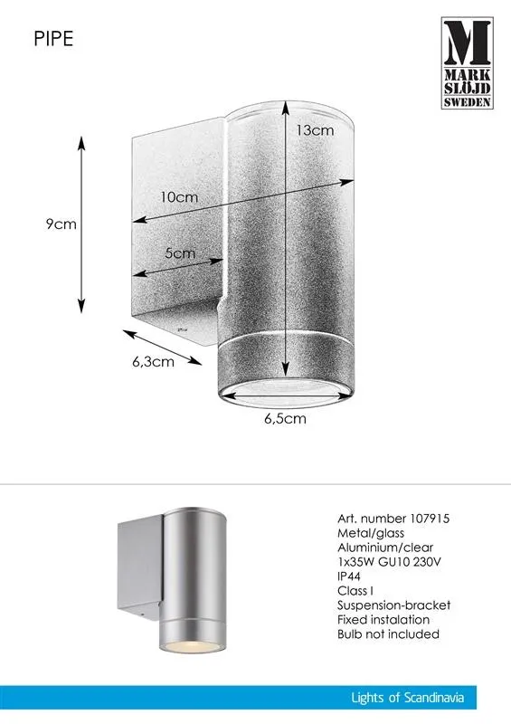 Markslöjd PIPE Kültéri fali lámpa GU10 35W alumínium