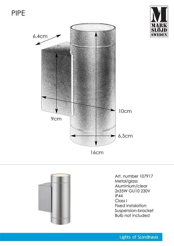 Markslöjd PIPE Kültéri fali lámpa GU10 35W alumínium
