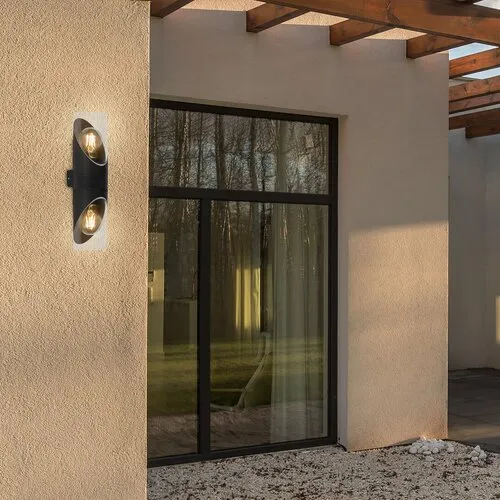 A Novigrad kettes kültéri fali lámpa különleges dizájnjával stílusos kiegészítője lehet bármely modern ház teraszának, ugyanakkor praktikus választás lehet a ház külső falára is. A felfelé és lefelé is világító, két fényforrással szerelt modell alsó és felső része tükörképe egymásnak. Az alul és felül is ferdén elvágott, alumíniumból készült fekete lámpatestet egy-egy átlátszó műanyagbúra egészíti ki teljes hengerré. A Novigrad két darab, egyenként legfeljebb 28 W teljesítményű fényforrással használható, a foglalatok típusa E27. A meghitt, otthonos hangulat megteremtéséhez ajánlott meleg fehér fényű fényforrásokat választani a lámpához. A kültéri lámpa méretei a következők: magassága 340 mm, átmérője 85 mm, faltól mért távolsága 120 mm. A Novigrad IP54-es védettsége garantálja, hogy por ellen, valamint bármilyen irányból fröccsenő víz ellen védett. A Novigrad kettes kültéri fali lámpát fényforrások nélkül szállítjuk.