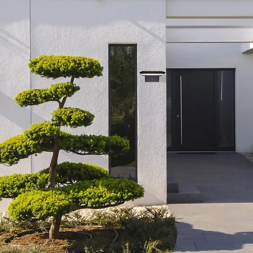 A modern stílusú Qesa mozgásérzékelős, napelemes kültéri fali lámpát elsősorban a teraszra vagy a ház külső falára ajánljuk, ahol megvilágíthatjuk vele a bejárathoz vezető gyalogutat. A fekete színben, teljes egészében műanyagból készült modellt fehér búra egészíti ki, a lámpa lefelé világít. A Qesa beépített LED fényforrással rendelkezik, amelynek teljesítménye 10 W, fényereje búrával 460 lumen, búra nélkül 800 lumen, színhőmérséklete pedig 4000 K. A természetes fehér fénnyel világító fényforrás élettartama 20 000 óra. Az akkumulátor feszültsége 3,7 V, kapacitása 1200 mAh. Az intelligens szenzor 3-5 méter távolságból, 120°-os látószögben érzékeli a mozgást, és a lámpa fényerejét a körülményeknek megfelelően változtatja. A kapcsolóval ellátott Qesa szélessége 155 mm, magassága 75 mm, faltól mért távolsága 100 mm. A kültéri lámpa IP44-es védettsége garantálja, hogy legfeljebb 1 mm átmérőjű tárgyak behatolása ellen, valamint bármilyen irányból fröccsenő víz ellen védett.