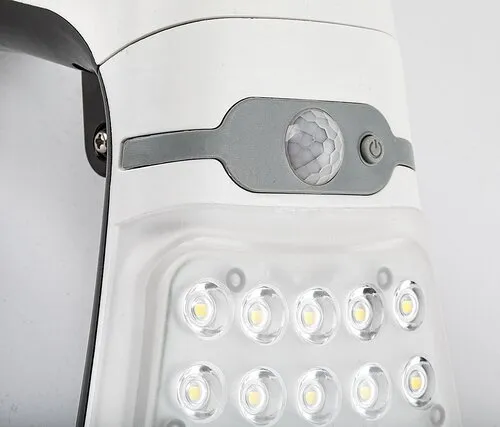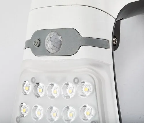 A modern stílusú Rogova napelemes, mozgásérzékelős kültéri fali lámpa remek választás azoknak, akik okos világítást szeretnének a teraszra vagy a ház külső falára. A fehér színben, teljes egészében műanyagból készült modell beépített LED fényforrással rendelkezik, amelynek teljesítménye 4 W, fényereje búrával 330 lumen, búra nélkül 400 lumen, színhőmérséklete pedig 4000 K. A természetes fehér fénnyel világító fényforrás élettartama 15 000 óra. A Rogova dimmelhető, azaz fényereje három lépésben (100, 50 vagy 30%) állítható. Az akkumulátor feszültsége 3,7 V, kapacitása 1800 mAh, a töltési idő 4-6 óra. Az intelligens szenzor 6±2 méter távolságból, 120°-os látószögben érzékeli a mozgást, és a lámpa fényerejét a körülményeknek megfelelően változtatja. A kapcsolóval ellátott lámpa magassága 210 mm, faltól mért távolsága 110 mm. A Rogova kültéri lámpa IP44-es védettsége garantálja, hogy legfeljebb 1 mm átmérőjű tárgyak behatolása ellen, valamint bármilyen irányból fröccsenő víz ellen védett.
