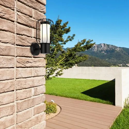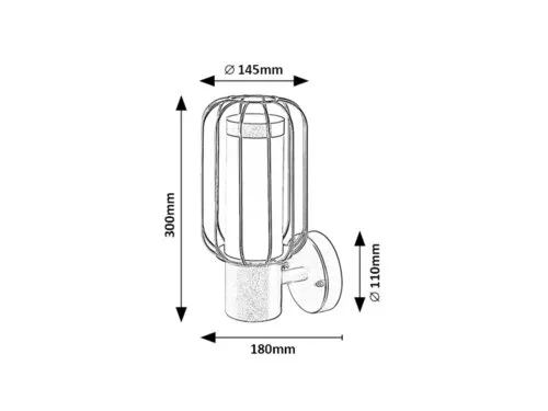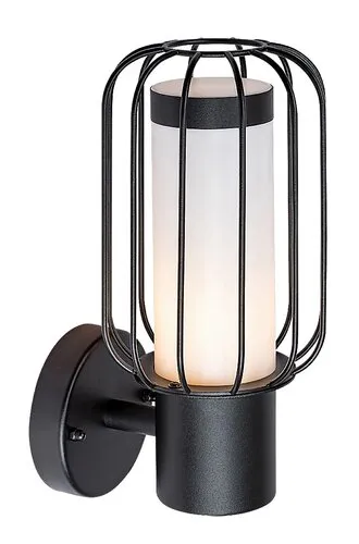 A modern Salamanca kültéri fali lámpa stílusos darabja lehet a terasz berendezésének, de elhelyezhető máshol is a ház külső falán. A rozsdamentes acélból készült fekete színű modellt fehér, henger alakú műanyagbúra egészíti ki, amelyet mintegy második búraként kalitkaszerű rács vesz körbe. A lámpa kerek dísztalp segítségével rögzíthető a falon. A Salamanca egy darab legfeljebb 15 W teljesítményű fényforrással használható, a foglalat típusa E27. Ha szeretnénk meghitt, otthonos hangulatot teremteni a teraszon eltöltött nyári estékhez, válasszunk hozzá meleg fehér fényű fényforrást. A kültéri lámpa méretei a következők: magassága 300 mm, átmérője 145 mm, faltól mért távolsága 180 mm, beépítési átmérője 110 mm. A lámpa IP44-es védettsége garantálja, hogy legfeljebb 1 mm átmérőjű tárgyak behatolása ellen, valamint bármilyen irányból fröccsenő víz ellen védett. A Salamanca kültéri fali lámpát fényforrás nélkül szállítjuk.