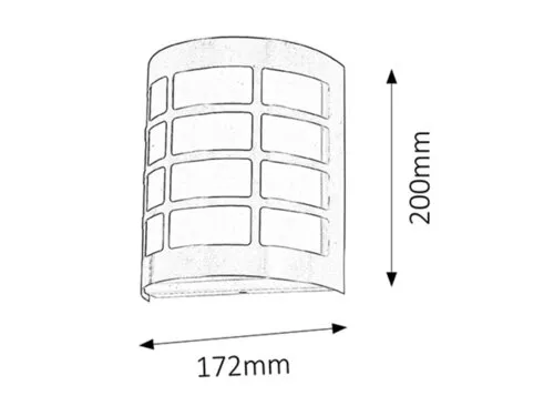 Modern megjelenésű kültéri fali lámpa, UV sugárzásnak ellenálló kivitelben, IP44-es, azaz fröccsenő víz és por elleni védelemmel. A 20 cm magas, 17.2 cm széles, műanyagból és rozsdamentes acél színű fémből készített lámpatest E27-es foglalatú, max. 11W teljesítményű fényforrással használható. A modell kizárólag energiatakarékos fényforrással használható!