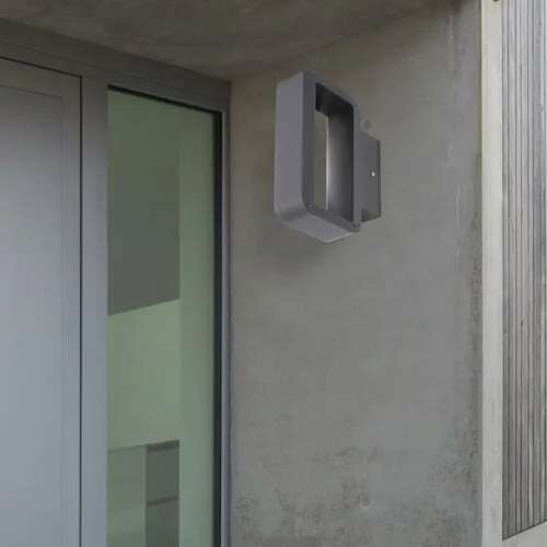 Modern megjelenésű kültéri fali lámpa beépített energiatakarékos LED fényforrással. 21 cm széles, antracit szürke színű fém ház és műanyag lámpabúra, IP54-es, azaz fröccsenő víz és por elleni védelemmel. A beépített fényforrás A enegiaosztály besorolású és 6W teljesítmény mellett 480 lumenes fényerőt, valamint 3000 Kelvines, melegfehér színű fényt biztosít. 5 év garanciával! A lámpatestbe beépített fényforrás nem cserélhető.