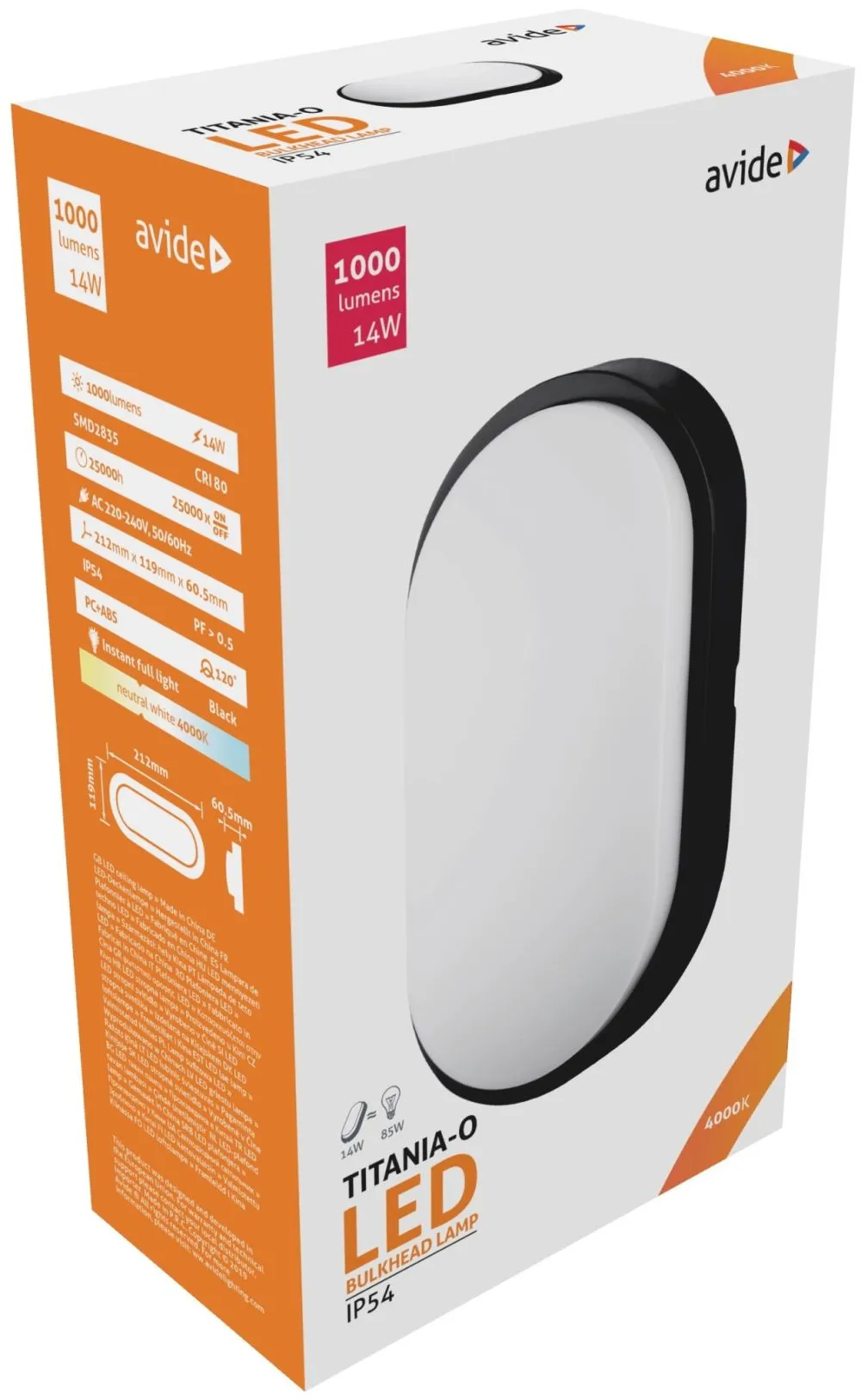 Avide (Titania-O) Cseppálló Mennyezeti Lámpa Ovális IP54 14W NW 4000K Fekete