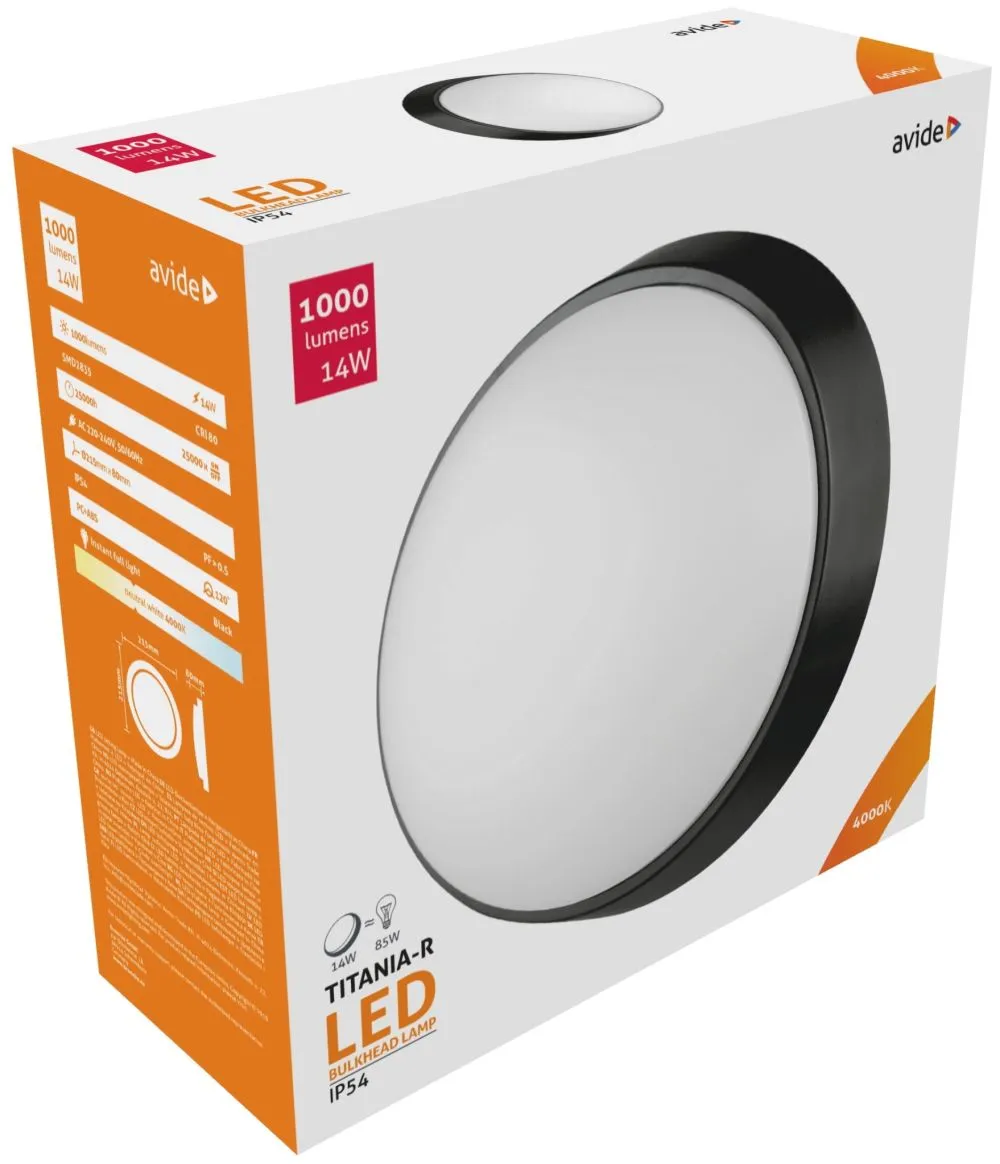 Avide (Titania-R) Cseppálló Mennyezeti Lámpa Kerek IP54 14W NW 4000K Fekete
