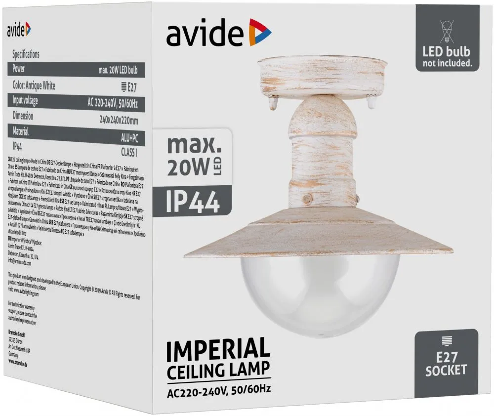 Avide kültéri mennyezeti lámpa Imperial 1xE27 IP44 antik fehér