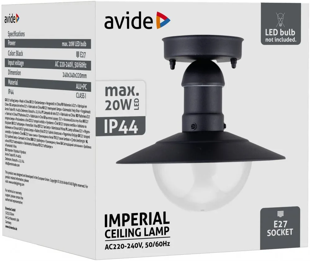 Avide kültéri mennyezeti lámpa Imperial 1xE27 IP44 fekete