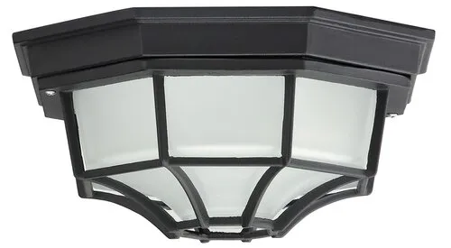 Klasszikus megjelenésű kültéri mennyezeti lámpa 1 db foglalattal. 26 cm átmérőjű, fekete színű, fémből készített lámpatest és opálüvegbúra, IP43-as védettséggel. A lámpatest E27-es foglalatú, max. 100W teljesítményű fényforrással használható.