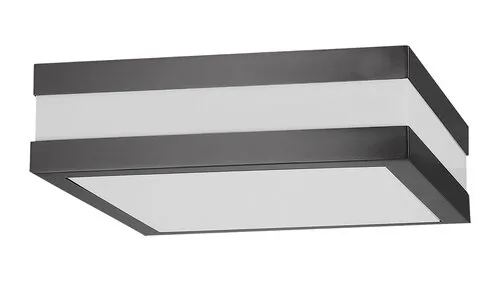 Modern megjelenésű kültéri mennyezeti lámpa 2 db foglalattal, UV sugárzásnak ellenálló kivitelben, IP44-es, azaz fröccsenő víz elleni védettséggel. 28,5 cm széles, antracit szürke színű fémből és fehér színű műanyagból készített lámpatest E27-es foglalatú, max. 2x 11W teljesítményű energiatakarékos fényforrásokkal használható. A lámpatest hagyományos fényforrásokkal nem működtethető!