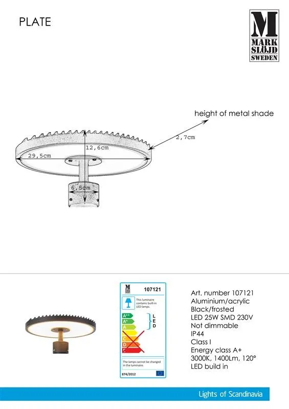PLATE Kültéri mennyezeti lámpa LED 25W meleg fehér 1400lm fekete