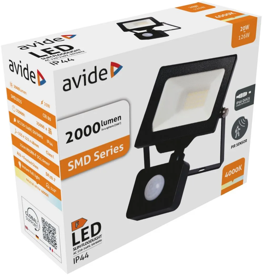 Avide LED Opál Reflektor Slim SMD 20W NW 4000K Mozg.érz. PIR Gyorscsat.