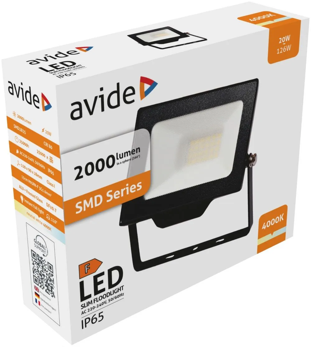 Avide LED Opál Reflektor Slim SMD 20W NW 4000K